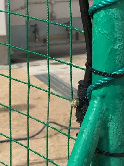 管理作業員さんが防球ネットからミストが出るようにしてくれました。