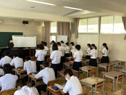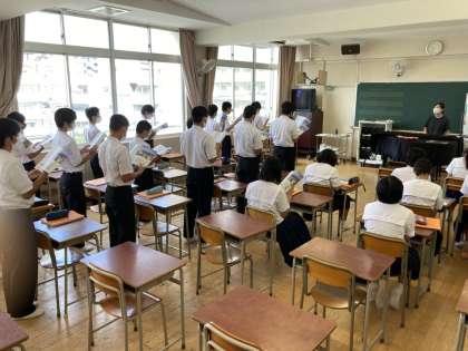 2年6組音楽の授業でイタリアの歌を舌を巻きながら歌っていました!