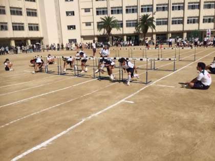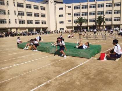 回って跳んでが始まりました。次は100メートル走になります。