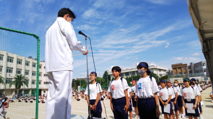 総合優勝4組の表彰と生徒会代表のあいさつ