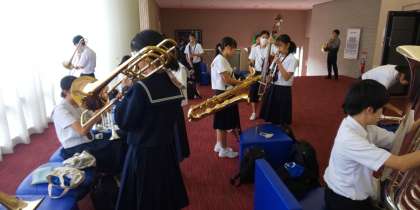 楽器の搬入も終わり、パートごとに音出しをしています。