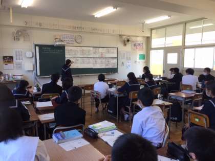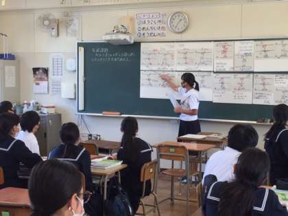 今日は自分たちの考えを自由にホワイトボードに書き込み、発表者がその内容をまとめるという発表の形をとりました。指示棒を使ってよく説明出来ていました。