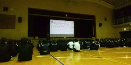 体育館で学年集会を持ちました。