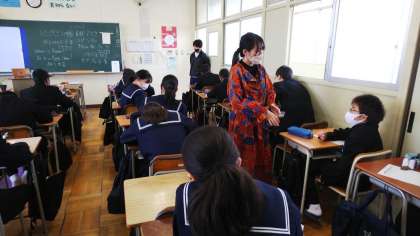 2限目は各クラスに分かれて、実際にJICA海外協力隊(青年海外協力隊)に行かれた方からのお話です。