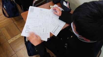 定期テストと違い、覚えていることを書くのではなく自分で考えて書く問題で、苦戦している人もいました。