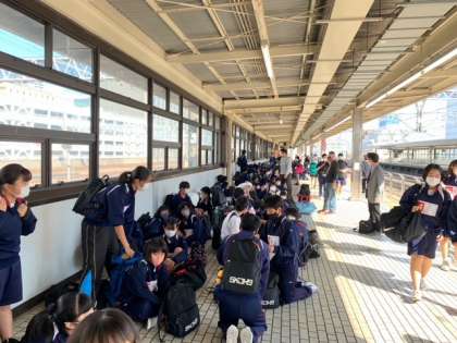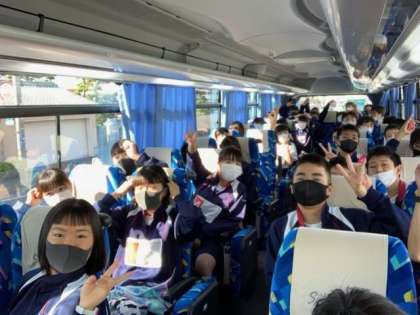 静岡駅に到着し、各体験別にバスに乗り体験場所に移動します。