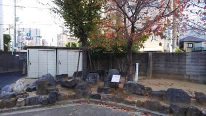 体育館前にたくさんの石が並んでいることにお気づきでしょうか?ここは新北野中学校岩石園です。大小さまざまな石がならび、理科の学習はもちろん、春には桜、秋には紅葉と、季節の彩りを魅せてくれます。