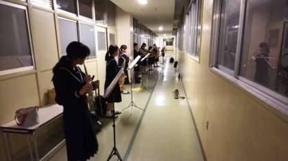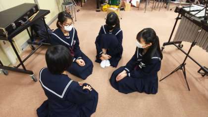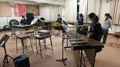 パーカッションパートでは、できていないところをお互いに言い合い、反省会をしていました。一つ一つ確認しながら、確実に仕上げたいですね。