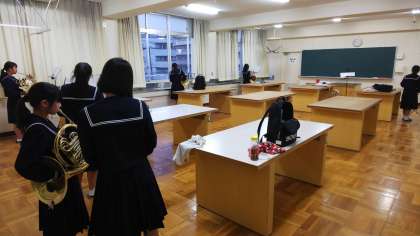 アンサンブルコンクールに出場しない人たちは、ソロコンクールの練習を始めました。希望者のみが出場ですが、新北野中学校からは21人が出場します。