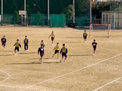 3年生の男子体育ではサッカーを行っています。自分たちでバランスを考えながらチーム決めをしています。盛り上がっていますね!