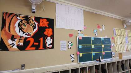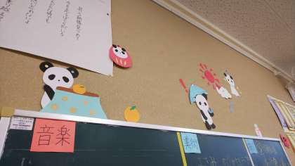 パンダ好きの担任の先生のために、美術部の生徒がパンダの飾りを作ってくれたようです。季節ごとの飾りがかわいいですね!