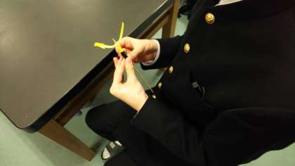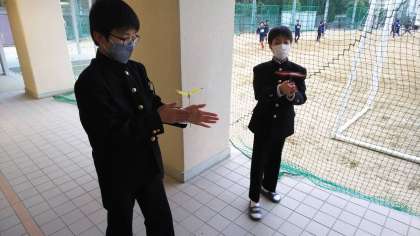 科学部では竹トンボを製作し、一人ずつ順番に披露していました。