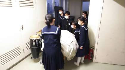 合唱コンクールに向けて、練習スペースを確保するために第2音楽室を片付けました。楽器を音楽室の端に置いたり、廊下に置いたりしています。