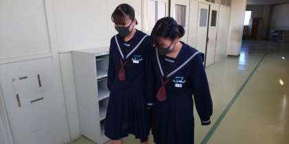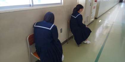 廊下ではとっても緊張した様子ですが、