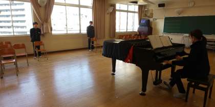 学期末につき、歌のテストが行われています。