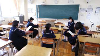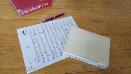 新しい楽譜が配られ、譜読みを行いました。パート内で同じリズムを合わせたり、わからない音楽用語を辞書を使って調べたりしていました。一つ一つ丁寧に確認することが大切ですね。