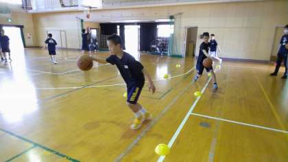 今日は昨年度からの課題であるディフェンスを、もう一度基本の形を確認するところから丁寧に行い、短い時間に集中して練習していました。