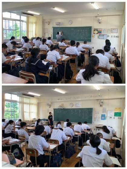 3年生の授業風景です。先週行われた実力テストの返却や解説をしているクラスもありますね。