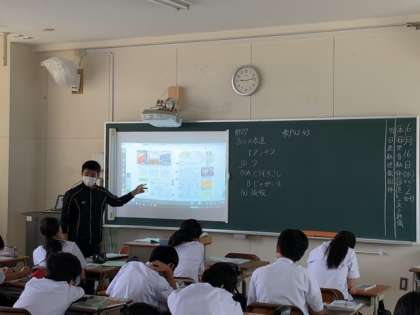 6組の地理ではデジタル教科書を使って説明を行なっています。