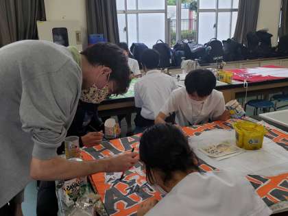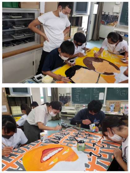 先生たちもいっしょに作業して、だんだんと仕上がってきています。