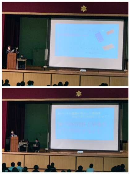 各クラスの代表が舞台に立ってプレゼンを行います。投票を行い、お菓子部門3班と旅行部門3班が文化発表会に出演します!