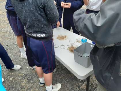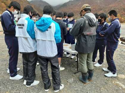 選択別体験(渓流釣り)では釣った魚を焼いて食べるために火種を作っています。