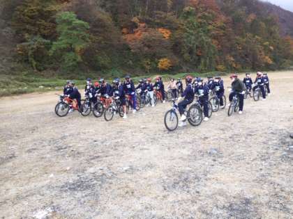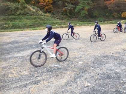 選択別体験(マウンテンバイク)では普段とは違ったブレーキの講習を行っています。