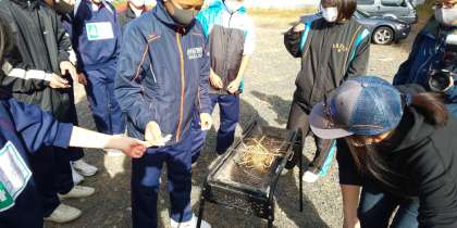 串打ちした魚を焼きます。