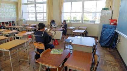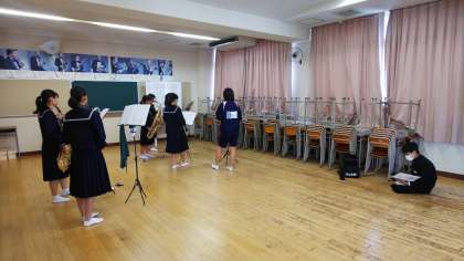 今日も朝から練習に励んでいます。アンサンブルを中心に、レベルアップのため、基礎練習をパートでやるなど工夫しています。頑張れ!