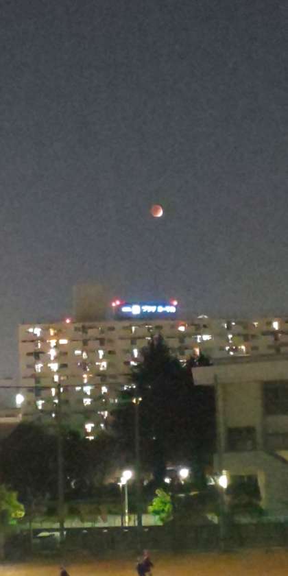 学校から月食が見えます。