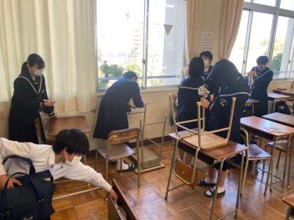 授業が終わって大清掃です。