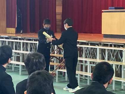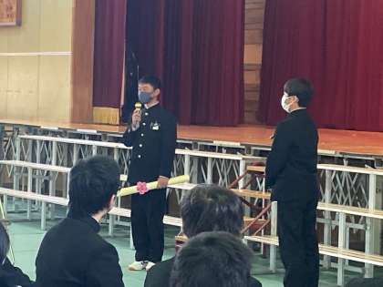 昨日作成した「3年生に贈る言葉」を卒業式の練習中の体育館で3年生にお渡ししました。