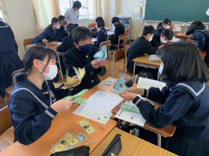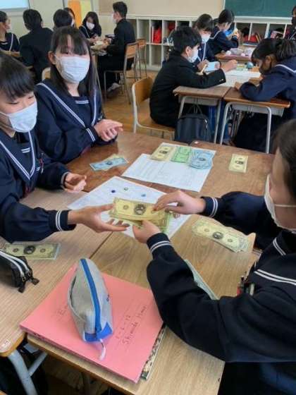 昨日と今日の1年生の英語はポール先生の授業でした。人生ゲームをして、ゲームの中でポール先生と会話の練習をしていきます。