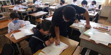 放課後に有志が残って、勉強しています。