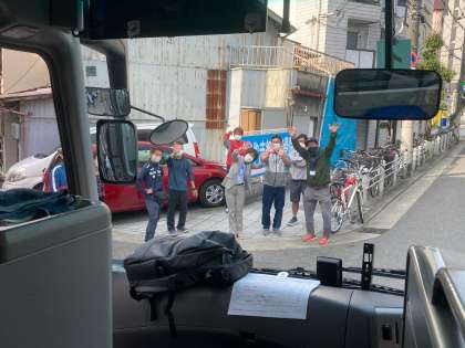 出発式・諸注意のあとバスに乗って7:30に出発しました。
