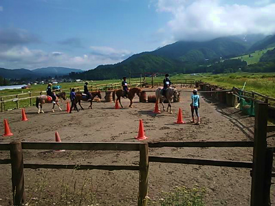 立山から白馬に移動し、体験学習を行っています。乗馬体験では、4頭の馬の世話、そして馬と仲良くなってから、乗馬しました。みんななかなか筋がいいようです。