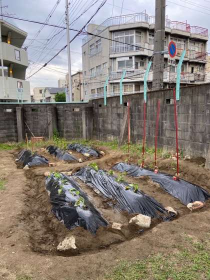掘り起こしや畝を作る作業をして、先週ついに苗を植えました!