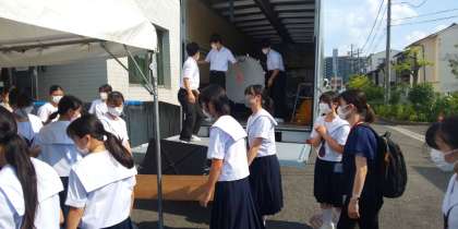 トラックから楽器を下ろし終わり、