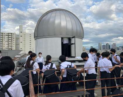 北野高校の屋上には立派な天文台が設置されていて、昨年同様、今年も北野高校の先生から声をかけてくださって、実現しました。
