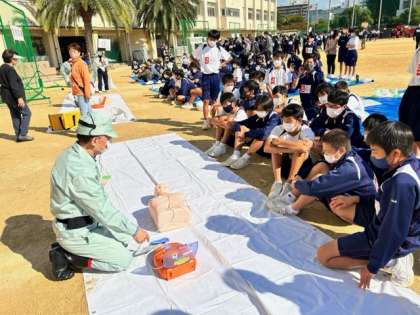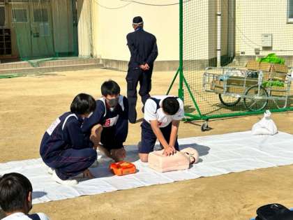AEDの使い方や心肺蘇生の訓練を行なっています。