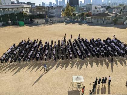 グランドで全校集会が