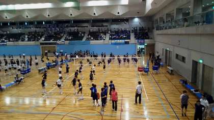 府の大会もいよいよ大詰めになってきました。バレーボール部は、岸和田総合体育館で、試合が行われます。府のベスト8が出そろいました。今、各チームともアップを行っています。写真の右上が北中です。みんながんばれ!