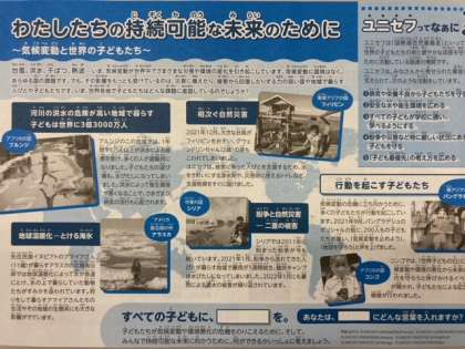 ユニセフ(国連児童基金)に募金しようと考えています。保健、栄養、水と衛生、教育、子どもの保護などの活動に使われるので、文化発表会での発表にあったSDGsのためにもなります。