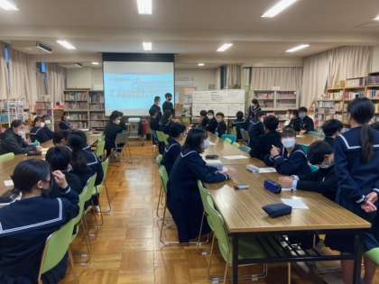 分散会のテーマは「スマホ依存症の危険を知り、改善策を考えよう」でした。11月に生徒会が参加したスマホサミットの内容をもとに話し合いました。