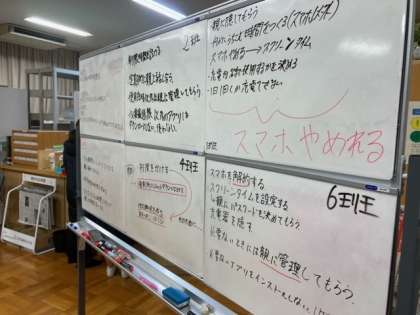 各班で改善策を考えてもらいましたが、それらをもとに各クラスで委員長に話をしてもらいたいと思います。また、全校生徒にアンケートをとり、新北野中学校でのスマホを使用にあたってのルールを決めていきたいと考えています。