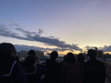 また、待ち時間には屋上からみんなで空を眺めました。普段はじっくりと眺めることは少ないので気付かないことも多いですが、オリオン座やカシオペア座、北極星、火星、冬の大三角、ふたご座、ぎょしゃ座など、大阪でもたくさんの星を見ることができました。