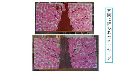 本日も快晴。暖かな日が続きます。今日で3年生の授業は終了です。校舎の窓には地域の方々が作成された「卒業おめでとう」が張り出され、玄関には後輩たちが書いたメッセージが展示されています。