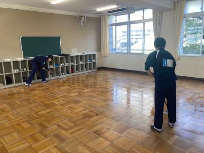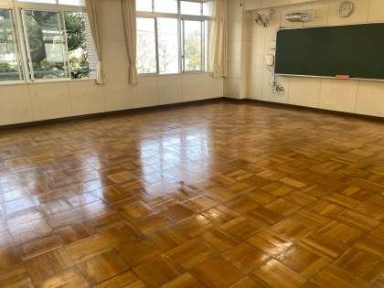 教室整備の後は、ワックスをかけて仕上げます。