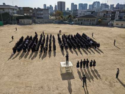 穏やかな日を浴びて全校集会が