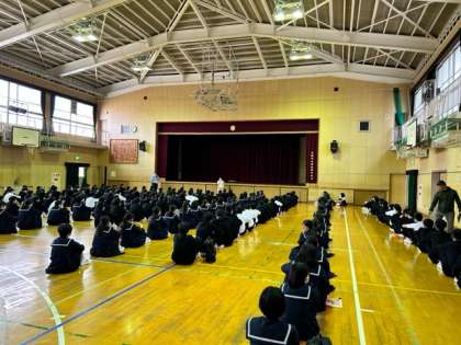 前畑先生からのお話です。3年生は行事はもちろん、いろいろなテストや懇談もたくさん入ってくるので忙しくなります。スケジュールを確認しながら主体的に行動し、悔いの残らない進路選択をしてほしいですね。